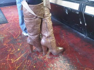 Pair no. 34: These pumps belong to someone much sassier than you would expect. Although, since they are alligator embossed and with a slight metallic sheen, you might guess that the owner has her own style and her own blog. I mentioned to the owner that when I turn 50, I will follow my Doctor’s advice and wear Dansko clogs — she scoffed openly at me! She told me she was turning 50 in a month and no way in hxxx, was she going to give up her high heels. Here’s a shout out to you Miss Fifty. Keep on workin’ it and keep on feelin’ it! See her blog at Renegade Conversations!